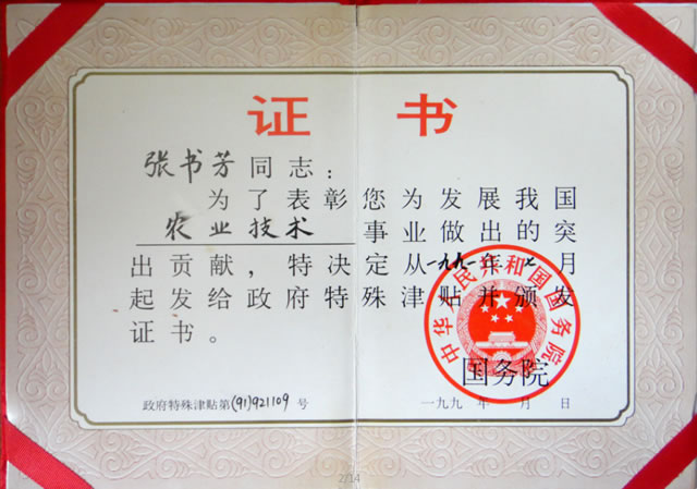 張書芳老先生是中國著名遺傳學(xué)育種專家、國家級有突出貢獻專家、全國勞動模范、首批享受國務(wù)院特殊津貼、首批政府特別獎獲得者。在他主持的大紅蘿卜、大白菜遺傳育種工作的近五十年中,取得重大科研成果13項,兩次榮獲“國家發(fā)明二等獎”(十幾年中一等獎一直空缺),填補了兩項世界科技空白,一次榮獲農(nóng)業(yè)部科技進步一等獎。